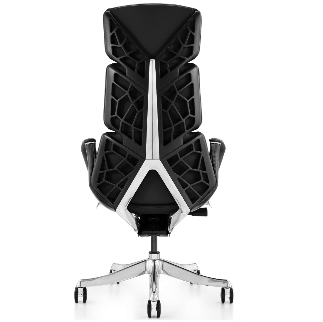 This chair, designed with a "futuristic industrial aesthetic" concept, seamlessly blends technological sophistication and comfort: The backrest features a geometric frame crafted from aluminum alloy, combining lightweight design with strong support; the contact surface is upholstered in top-grain cowhide, offering a delicate touch while remaining durable and breathable; and an internal lightweight steel frame provides stable support while maintaining structural resilience.